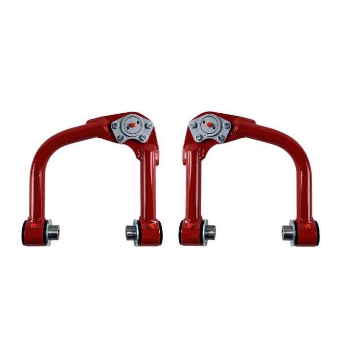 JBA Upper Control Arms are assembled and ready to bolt into your Ford Bronco! American-made steel tubing, red powder-coat finish, replaceable ball joints, 2 grease ports for the JBA EZ lube bushings, and 1 grease port for the ball joint.