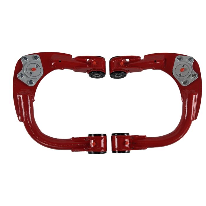 American-made steel tubing, red powder-coat finish, replaceable ball joints, 2 grease ports for the JBA EZ lube bushings, and 1 grease port for the ball joint.